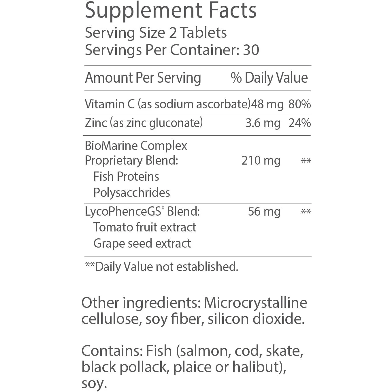 • حاوی عصاره ماهی، لیکوپن، ویتامین C و زینک و عصاره هسته انگور