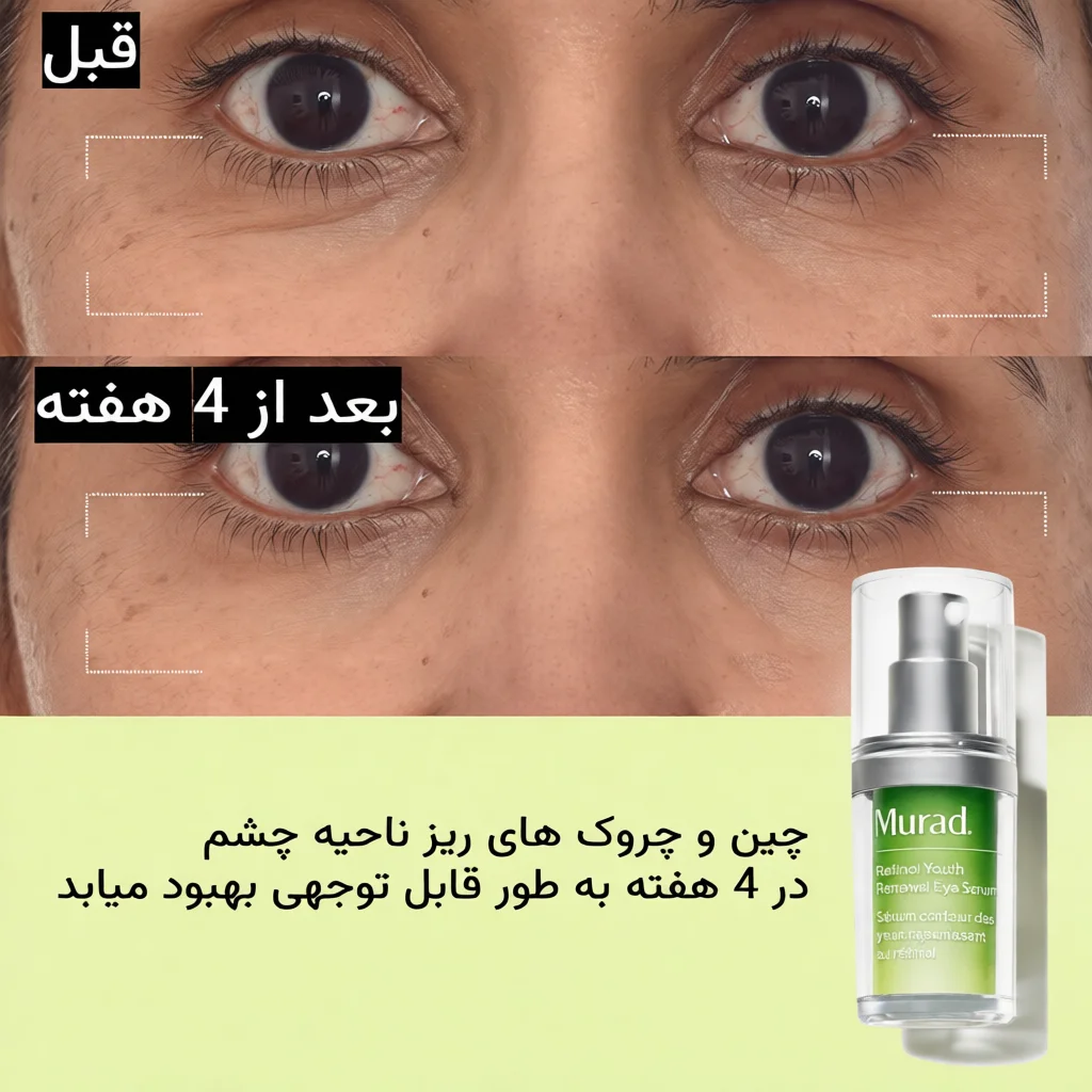 کرم دور چشم موراد به کمک از فناوری جدید به نام رتینول باعت تقویت سد دفاعی پوست، از خشکی و کم شدن عالائم پیری را احساس میکنید.