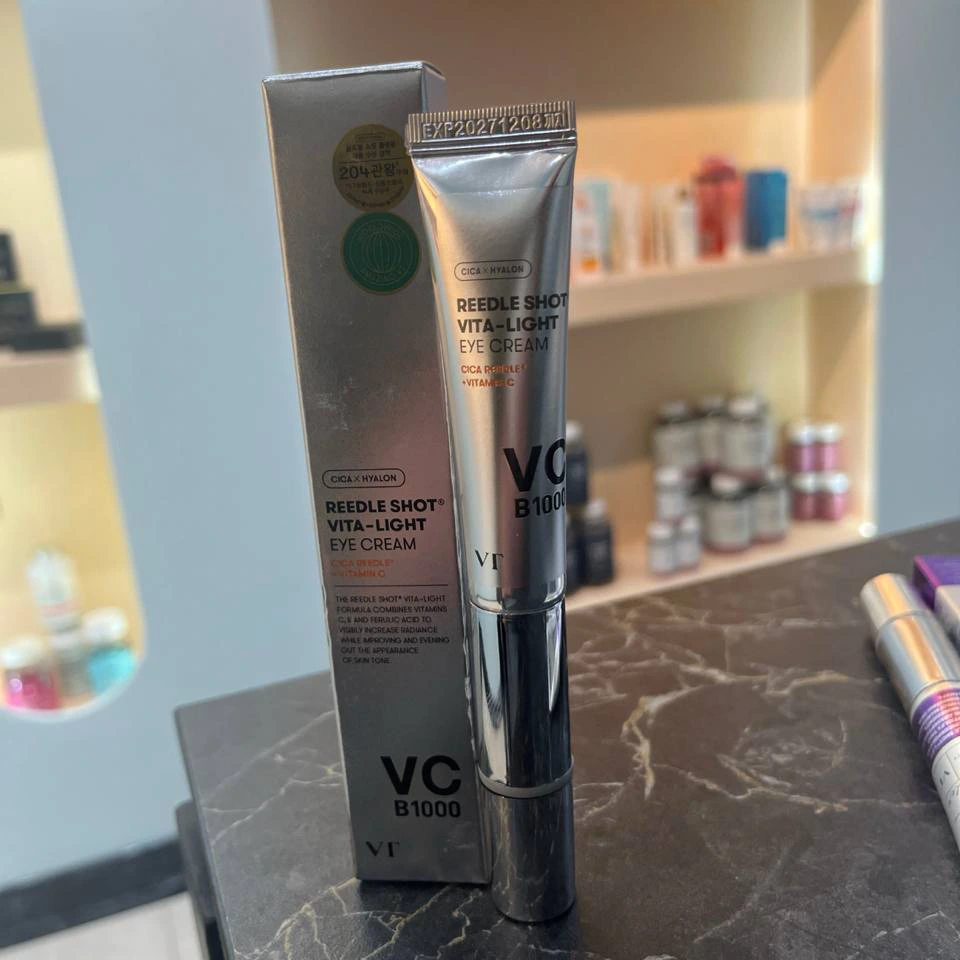 کرم دور چشم ویتا لایت ریدل شات Reedle Shot Vita Light Eye Cream یک کرم دور چشم روشن‌کننده و جوانساز از برند VT Cosmetics است که با تکنولوژی اختصاصی Cica Reedle™ یعنی میکروسوزن‌های کاملاً گیاهی استخراج‌شده از سنتلا آسیاتیکا ساخته شده که به جذب بهتر مواد فعال کمک می‌کنند. این کرم با بافت سبک و جذب سریع طراحی شده و سر آن دارای یک اپلیکاتور فلزی ویبره‌دار قرار دارد تا هنگام استفاده حس ماساژ ملایم، خنکی و کاهش پف دور چشم ایجاد کند. فرمول آن با ویتامین C، نیاسینامید، رتینول، گلوتاتیون و CicaHyalon™ غنی شده و هدفش روشن‌کردن تیرگی‌ها، کاهش خطوط ریز، افزایش طراوت و آبرسانی عمیق پوست حساس اطراف چشم است.